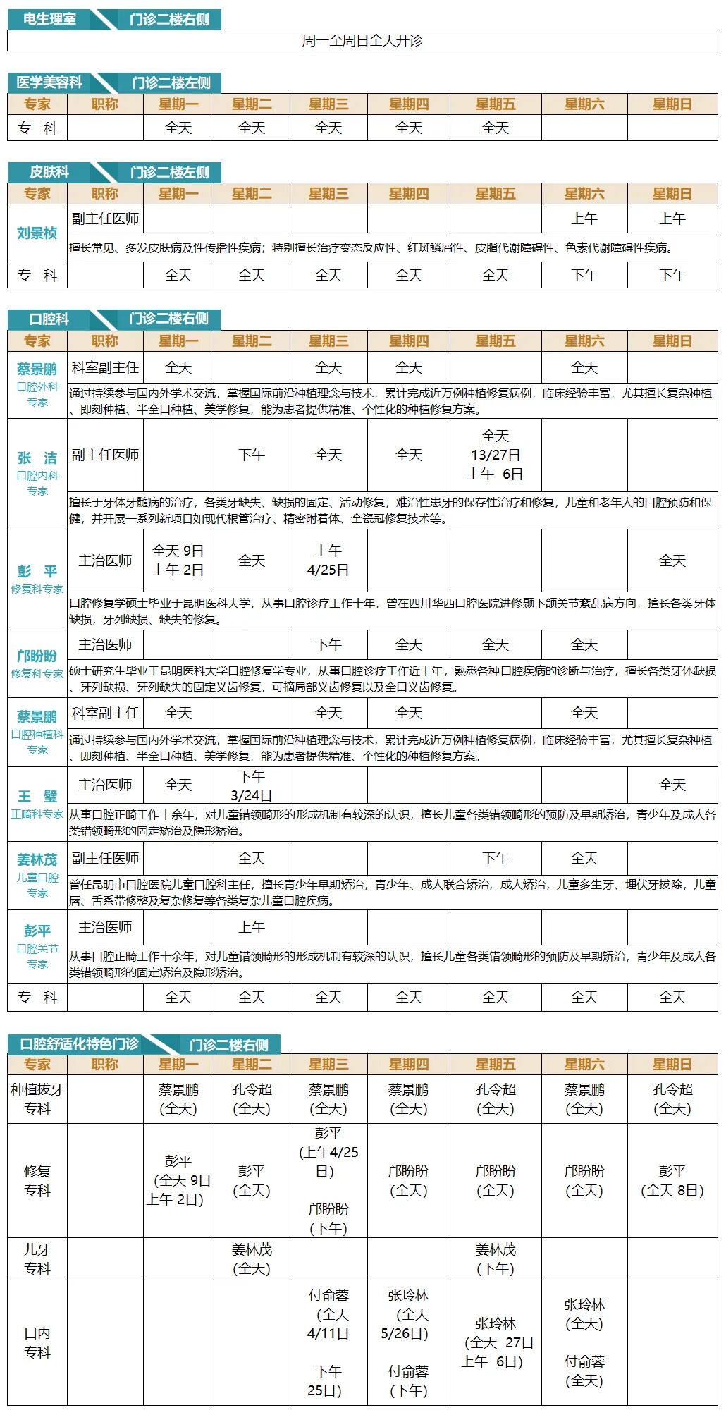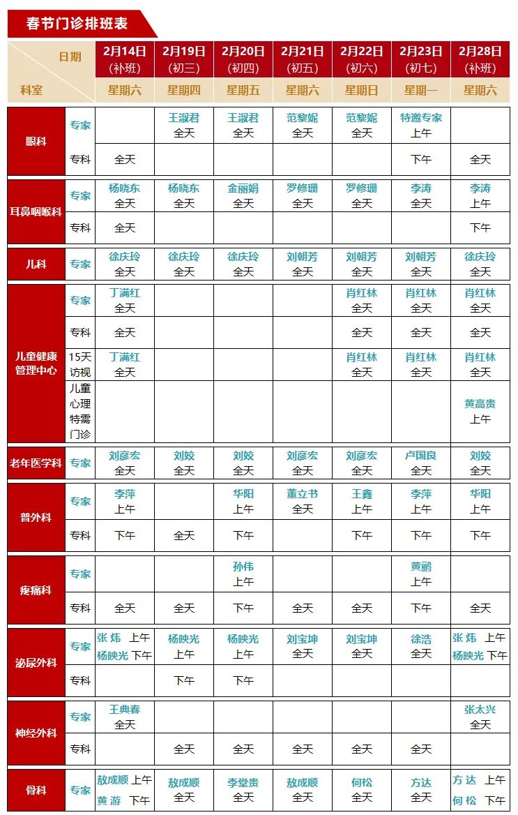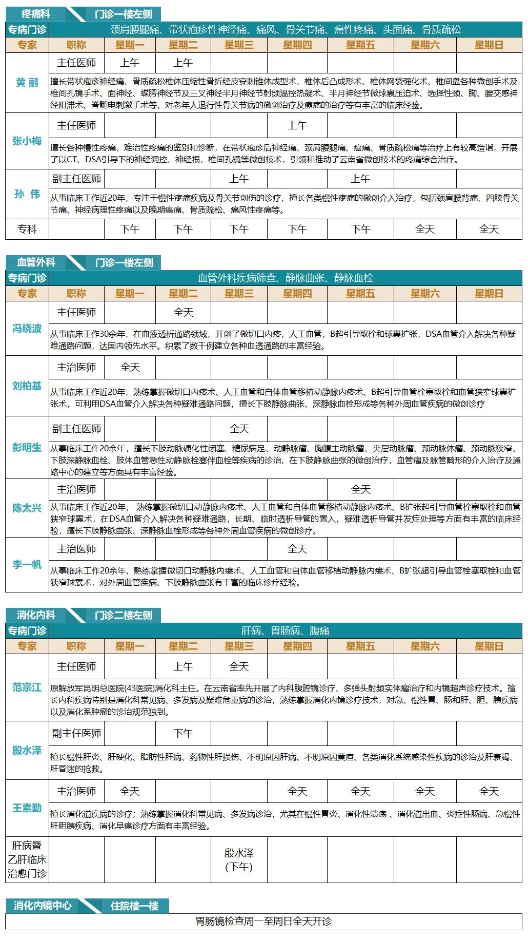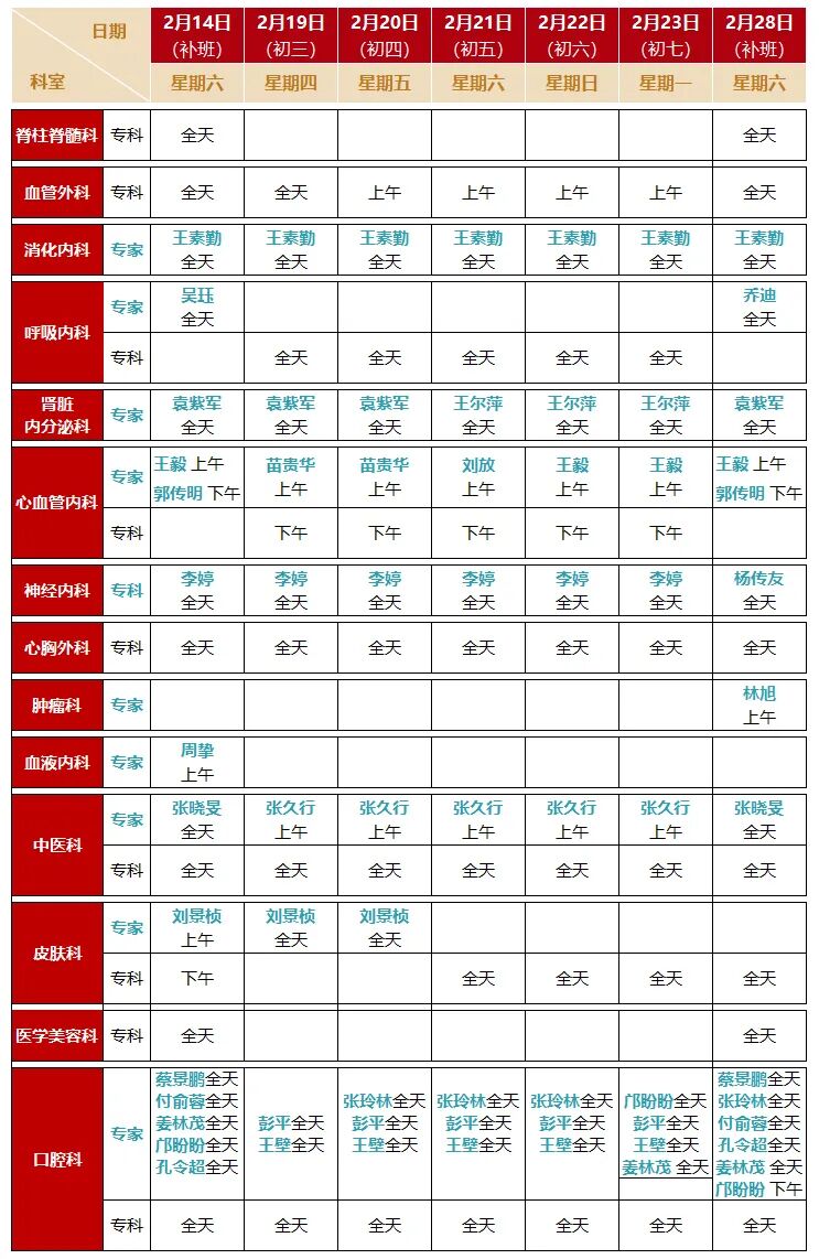 注:出诊专家如有临时变动以当天实际坐诊为准。